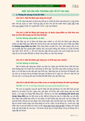 MỘT SỐ CÂU HỎI THƯỜNG GẶP VỀ KỲ THI HSA