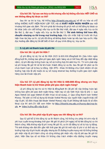 Câu hỏi 37: Lệ phí đăng ký dự thi HSA là 600.000 đồng nhưng em thực